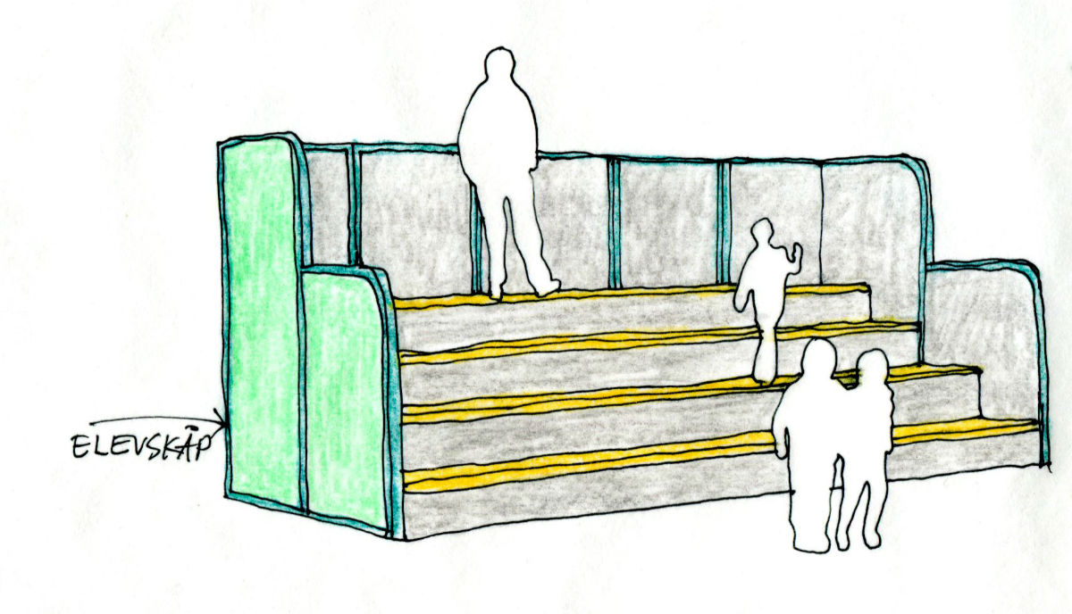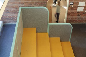 Möbeln är en modulbaserad gradäng med integrerade elevskåp. Den unika konstruktionen reducerar oönskat ljud och buller.